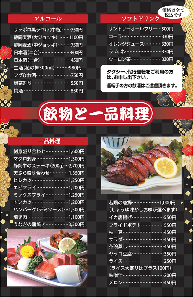 お酒類と一品料理