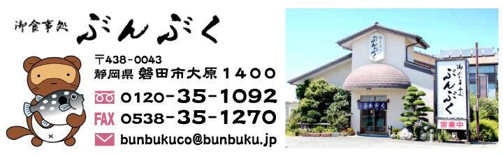 当店 「ぶんぶく」は分福茶釜から名前がついたと先代から聞いておりますが、 その他に「福を分ける」、当店に来て頂いた方々に、 お食事を通して「福」を分けるとも聞いておりました。