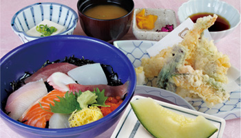 1,870円(税込)※海鮮丼をメインに天ぷら、メロン付き。